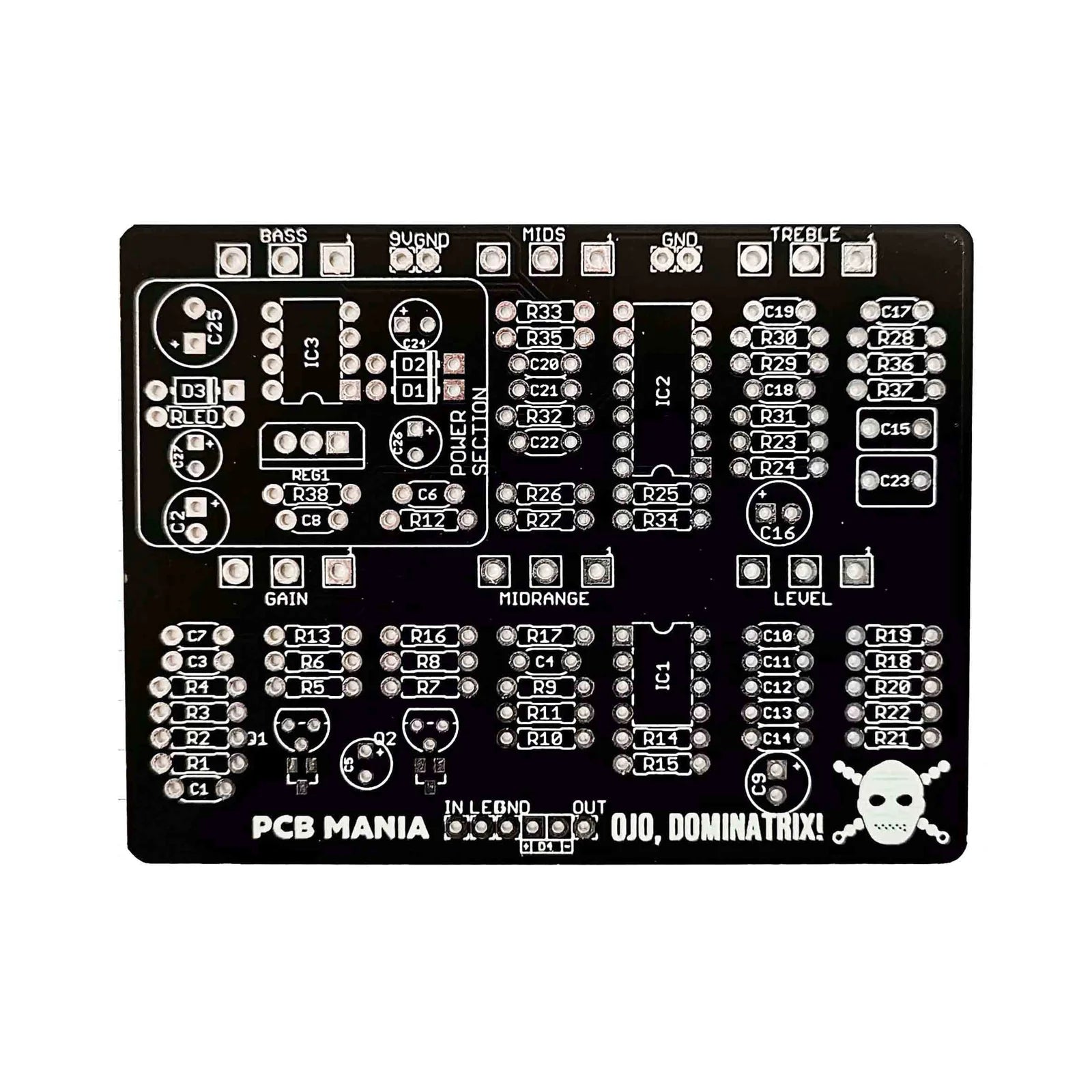 A built-in charge pump for more headroom. (Make sure your electrolytes can handle them) a super powerful EQ and Distortion with its own voice and powerful attack. I mean… You can imagine that I build quite a lot of drive pedals, but this one ended up on my board right after I put it in the enclosure. Not even needed an artwork on the 1590BB… Just had to play it.